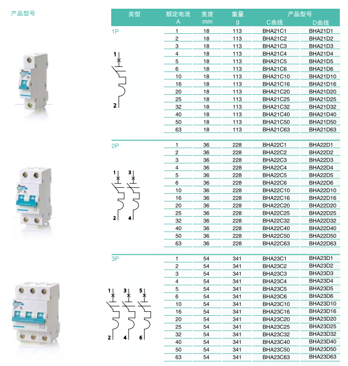 更多参数请下载下方所列型录参考 BHA系列小型断路器